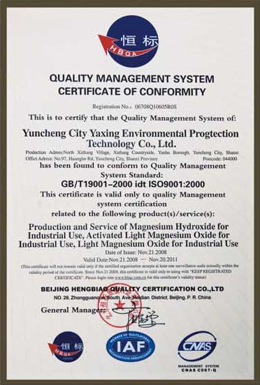 本公司有嚴格的質量保證體系,從鹽湖鹵水的養護調試,到生產過程中的每一道工序,都有嚴格的指標控制。利用天然鹽湖的鎂資源,再加上先進的工藝以及全不銹鋼設備為保證,使生產的各種鎂合物產品均能達到國家行業標準要求。